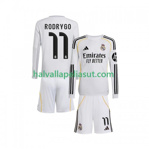 Jalkapallo Pelipaidat/Peliasut Real Madrid Rodrygo 11 Lasten Kotipaita 2025-2026 Pitkähihainen